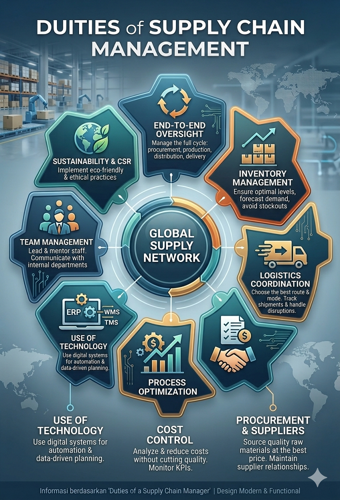 #supplychainduties #supplychainmanagerresponsibilities #inventorymanagement #logisticscoordination #procurementstrategy #ERP #WMS #TMS #supplychainsustainability
